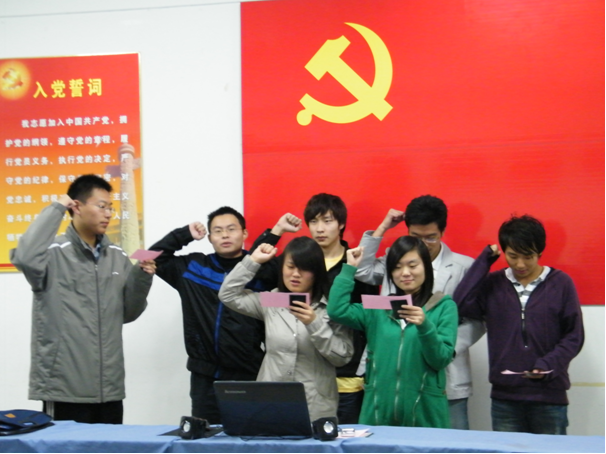 新团员在鲜艳的党旗下接受作为一名团员的使命。组织部部长钟飞同学宣布新团员入团仪式开始,伴随着庄严的中国共青团团歌,组织部潘磊同学带领新团员宣誓,新团员右手握拳上举,用庄严地誓词表明他们坚决拥护中国共产党,遵守团的章程,执行团的决议,履行团员义务,严守团的纪律,勤奋学习,积极工作,吃苦在前,享受在后,为共产主义事业而奋斗的决心。之后,电子系团委组织部部长钟飞同学为新团员颁发了团员证。一张张庄严地面孔,一双双真诚的双眸,一颗颗炽热的真心在那一刻让我们读懂:我坚持中国共产党的领导,坚决服从团组织的安排,认真完成组织分配的任务,服务群众,在奉献中实现自我价值,在学习中实现自我提升。