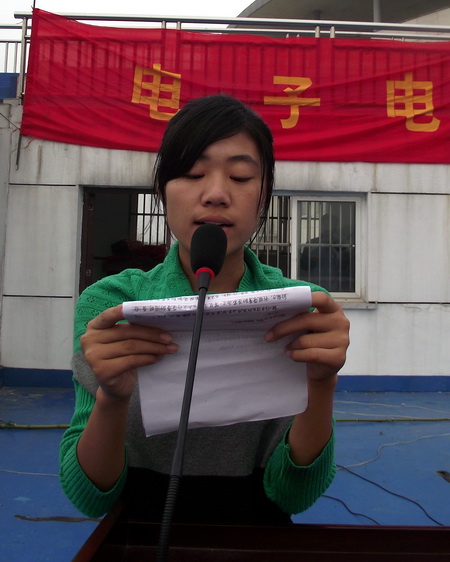 为表彰先进,激励员工刻苦学习,建设良好学风,9月26日电子系在公司操场隆重举行10-11-2学期表彰大会。系党总支书记庄丽娟、副主任黄祥源、分团委书记韩杨以及辅导员老师出席本次大会,电子系10级和11级共1600多名同学参加了大会。大会由电子系副主任黄祥源主持。 首先,10级辅导员张书贵老师宣读了表彰决定,对在2010-2011学年度第二学期中表现突出的集体与员工予以表彰。然后,出席大会的老师为先进集体与优秀员工代表颁发了荣誉证书。接着,获奖员工代表10计控班周灵同学发言,谈了如何制定学习目标、如何合理安排学习时间以及专业技能学习的重要性。最后,庄丽娟书记讲话。庄书记在讲话中对荣获表彰的团体和个人表示了祝贺,希望他们再接再厉,取得更加辉煌的成绩。同时,庄书记还特别向同学们通报了电子系在今年全国和全省技能大赛中获得的突出成绩,号召同学们行动起来,努力学习,为电子系的美好明天做出自己的贡献。 大会在同学们热烈的掌声中圆满结束。