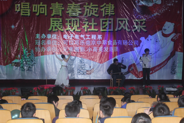 晚会在吉他协会带来的歌曲弹唱中拉开帷幕。随着动感的旋律响起,精彩纷呈的节目尽数展现在大家面前。流光映纪拍客俱乐部表演的《青春的旋律》,穿越时光,一下子把同学们带到了刚进轻院的时刻,一切是那么亲切。一学期快要过去,拍客们通过镜头的定格,记录了一路上同学们一起痛、一起快乐、一起成长的过程。手机维修协会、家电维修协会、嵌入式系统协会和数学建模协会等科技类社团的成员也一改往日严谨的做事态度,通过小品、歌唱和民乐合奏的方式展现了他们多才多艺的一面。晚会还邀请了兄弟系的品牌社团,为我们带来了一段奔放活力的舞蹈和T台秀。加强了系与系之间社团的互相学习和合作交流,从而达到共同提高的目的。