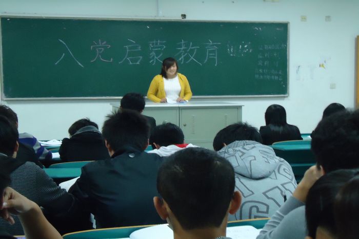 在此之前,班主任发给每位同学一份材料,里面包括各类入党动机的描述、入党需要具备的条件、入党的程序以及入党申请书的规范写作等内容。在主题班会上,众多有入党意愿的同学积极发言,有的表达了对于即将走向“入党”这条道 路的积极期待,有的通过表述与周围党员的接触,而产生的对党的向往和对人生成长的追求。