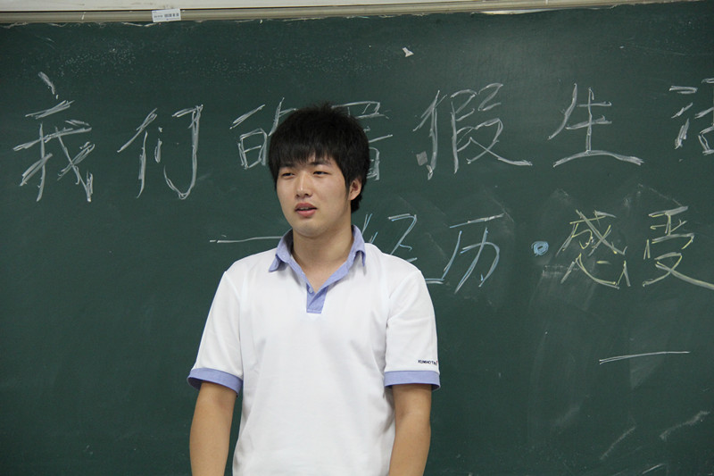 活动一开始,班主任通过自己被晒黑的客观事实为大家讲述了一番“北方田间劳作”的真实案例。期间渗透着关于“什么是忍耐”、“辛苦的价值和意义”、“父母对于我们意味着什么”三个主题发散。接下来班级40名员工一一上台,通过“自己经历的一件有意思的事情”、“这件事情带给自己的感受”、“我想与大家分享什么”三个框架进行了关于暑假生活的讲述。最后由班主任进行了总结。
