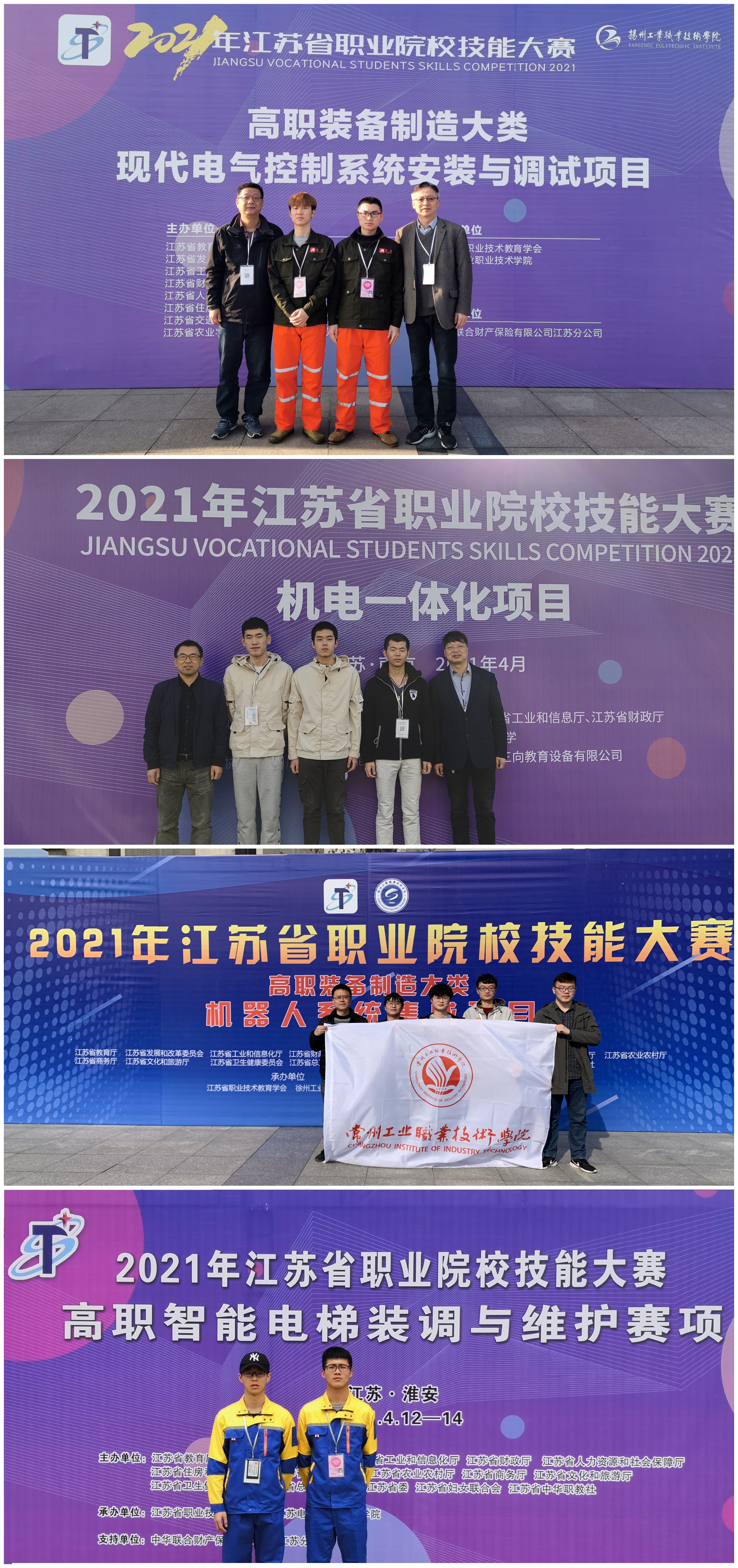 2021年江苏省职业院校技能大赛高职组于4月14日落下帷幕。今年yl23411永利官网共派出6支队伍奔赴南京、扬州、徐州等地参赛,以3金1银的成绩交出了令人满意的答卷。参赛选手在比赛现场沉着应对、奋勇拼搏,在赛场完美展示了常州工业学子扎实过硬的职业技能水平和坚忍不拔、迎难而上的优秀品质。