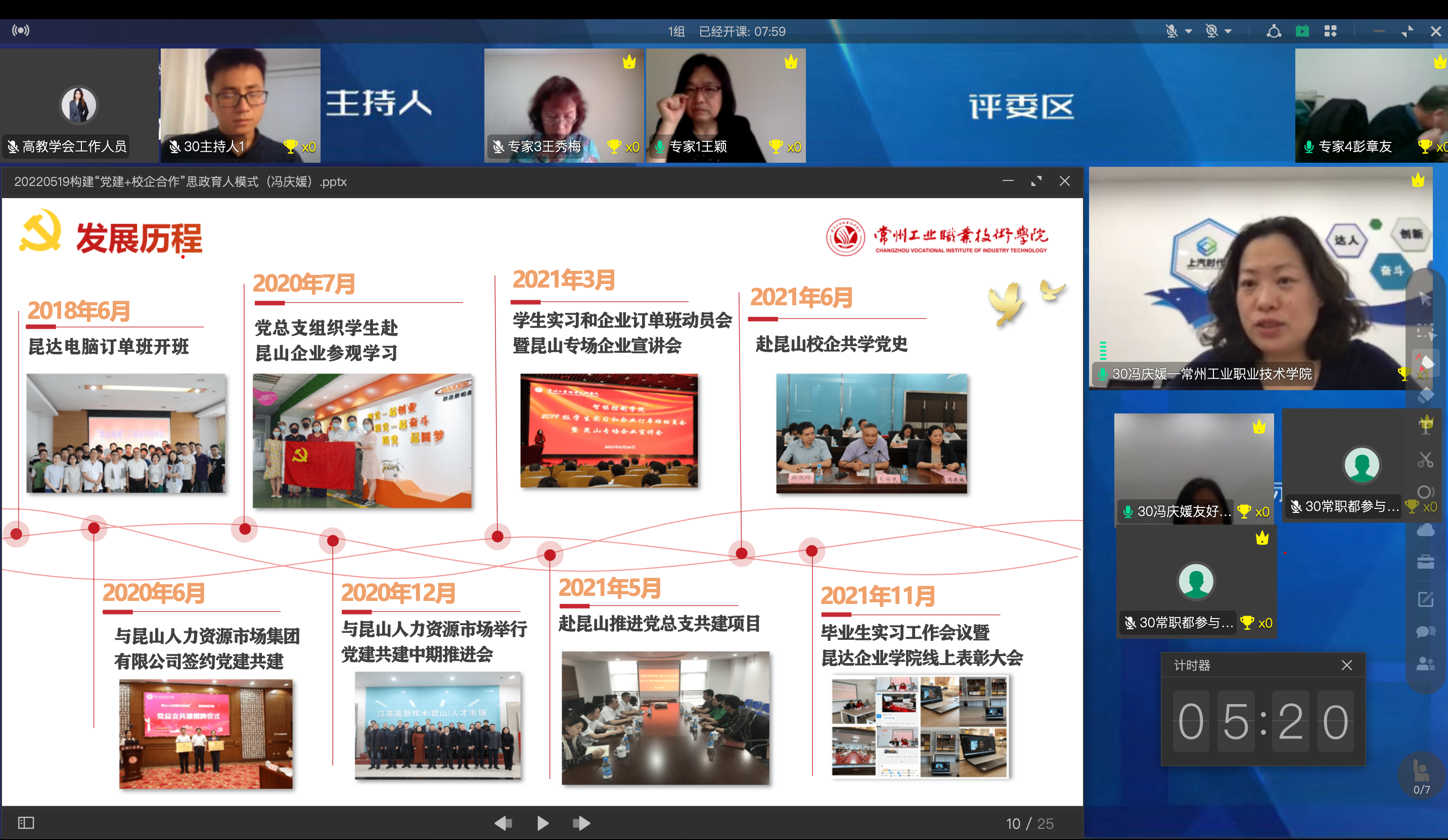 5月19日下午,中国高等教育博览会“校企合作 双百计划”专家组对yl23411永利官网党总支进行线上走访,参加此次双走访活动的专家组组长为苏州工业园区服务外包职业公司副董事长王颖,专家组成员为华北电力大学工程训练与创新创业教育中心主任王秀梅、上海大学教务部常务副部长彭章友。yl23411永利官网党总支书记冯庆媛,携手企业方代表昆山人力资源市场总监赵刚、昆达电脑科技公司(昆山)有限公司人事总监翟玉香、上汽时代动力电池系统有限公司人事总监张凌一及相关教师出席线上走访活动。会议伊始,专家组组长王颖介绍了“双百计划”双走访活动的背景和考察要求,并为yl23411永利官网党总支案例《构建“党建+校企合作”思政育人模式》颁发2021年度“双百计划”典型案例提名证书。