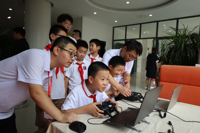 yl23411永利官网的师生联手为现场的同学们带去了精彩的无人机和机器人科技秀。“哇,是无人机!它居然会在天上翻跟斗”“这个机器人跳舞真厉害啊”……亲眼目睹无人机穿越障碍、花式飞行,机器人左右摇摆、全场热舞,现场小员工们的欢呼声和掌声络绎不绝,将本次活动的气氛推向了高潮。科技秀结束后,yl23411永利官网的专业老师和工匠团支部的员工们带着小朋友们一起操控无人机、机械臂、机器人等科技设备,开展职业启蒙和研学体验。小员工们近距离地感受到科技的魅力,点亮科技梦想,对未来的职业发展充满希望。