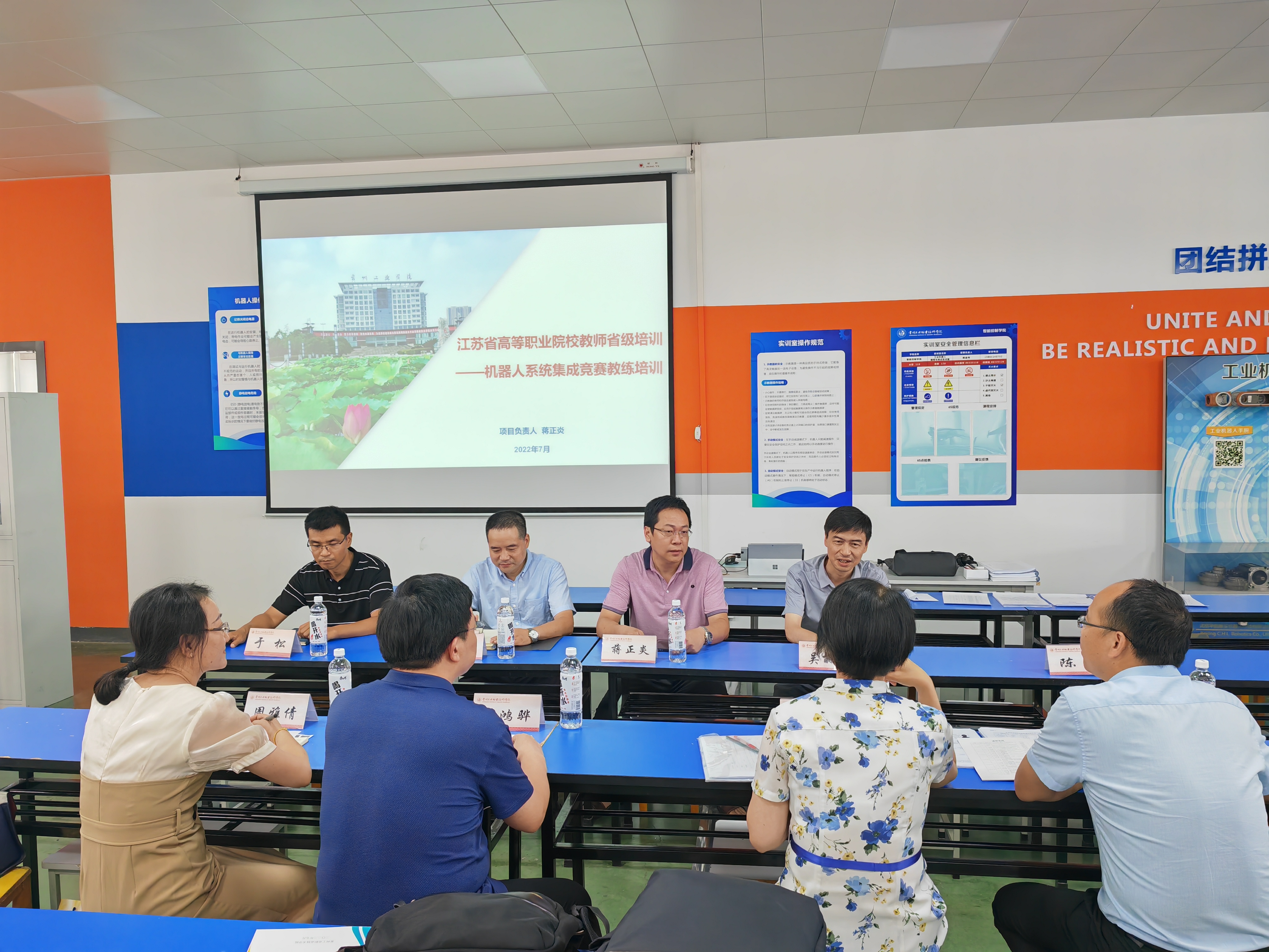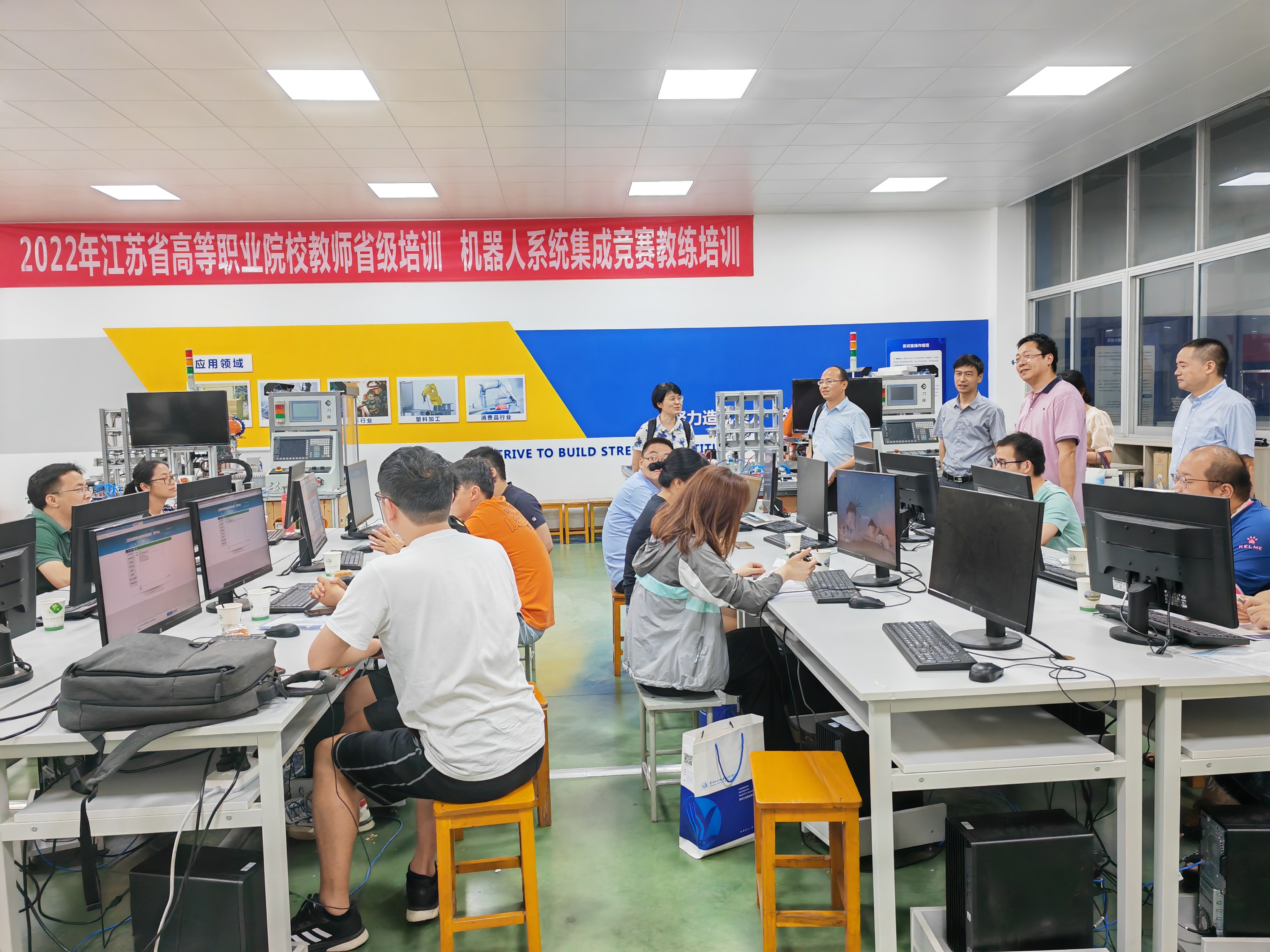 为进一步加强培训管理,提高培训质量,及时总结培训经验,7月22日,江苏省教育厅教师工作处处长徐萍,中职教师培训中心主任曹鸿骅,高职师培中心主任聂伟进,高职师培中心国培项目主任周雅倩莅临公司调研“机器人系统集成竞赛教练培训”项目实施情况。副董事长吴丽云,yl23411永利官网经理蒋正炎陪同调研。