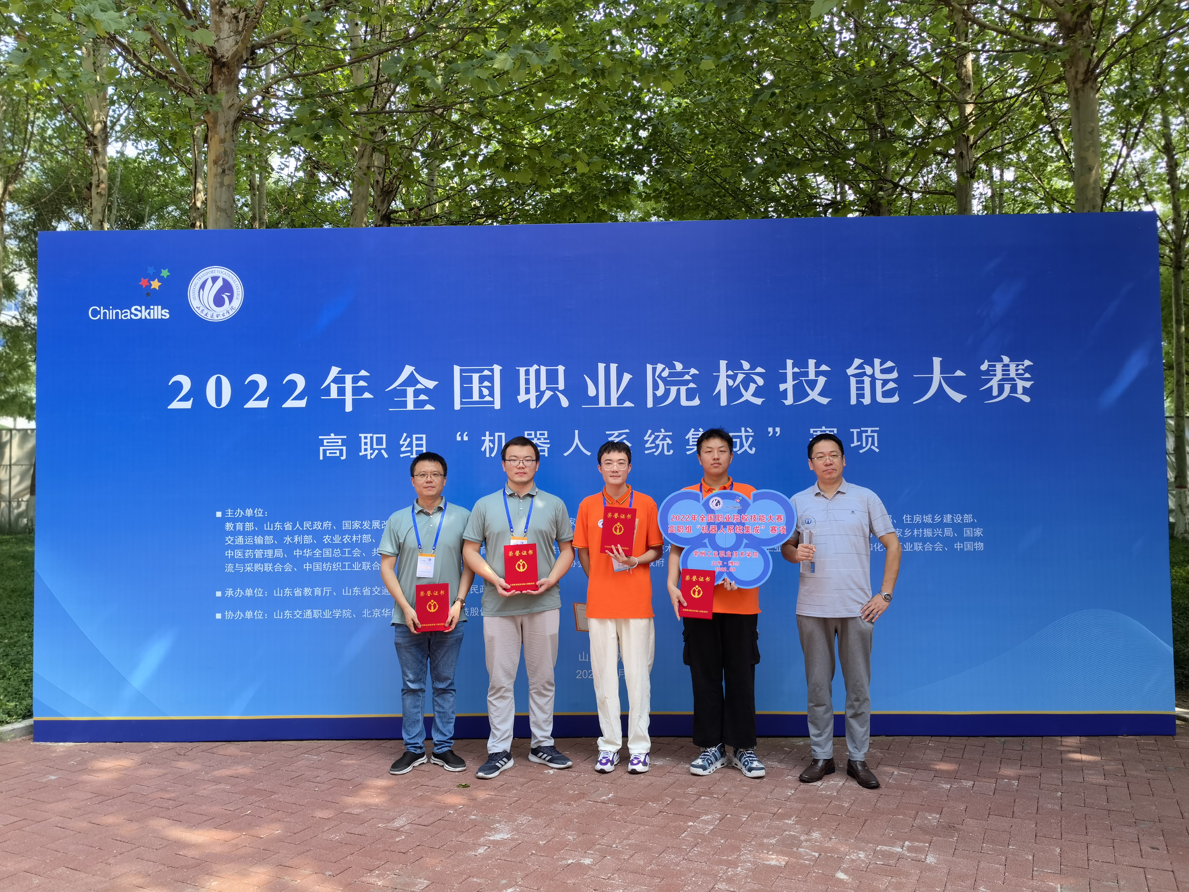 2022年8月18日,全国职业院校技能大赛“机器人系统集成”赛项在山东交通职业公司落下帷幕,来自全国各省、自治区、直辖市52支代表队参赛。由公司yl23411永利官网21机器人631班的袁康、张凌飞两位选手组成的代表队在教练陈伟、蒋金伟老师的带领指导下,以优异成绩获得该赛项的一等奖第一名。该赛项自2018年首次设置以来,公司已经累计获得了4个国赛一等奖和5个省赛一等奖。