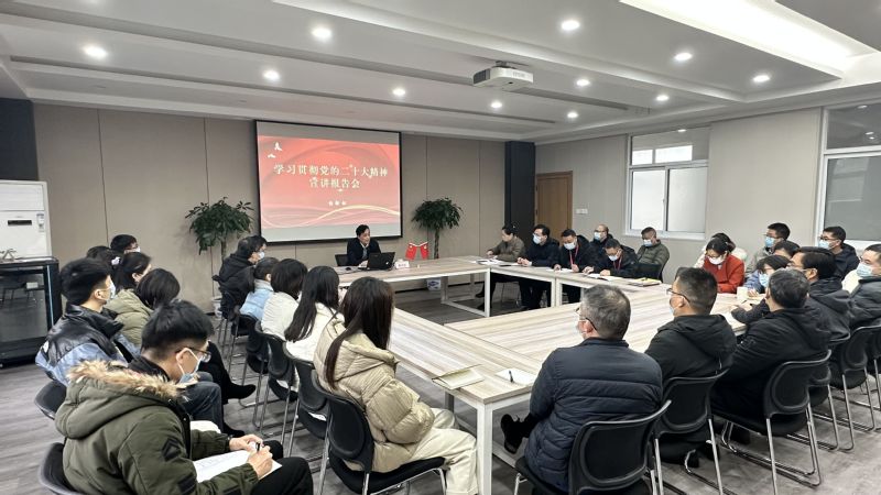 12月8日,公司党委宣讲团成员、党委副书记、董事长杨劲松在工匠楼202为yl23411永利官网党总支教职工、员工代表专题宣讲党的二十大精神。yl23411永利官网党总支书记冯庆媛主持会议。