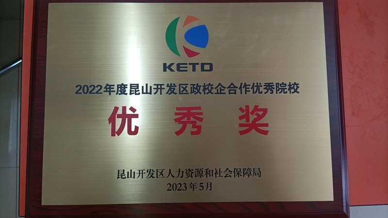 公司作为政校合作优秀单位,受到了昆山开发区人社局的表彰,荣获2022年度昆山开发区政校企合作优秀院校奖。