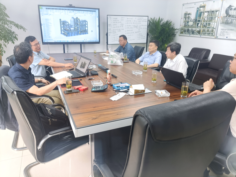 李明锁对席海涛一行表示热烈欢迎,详细介绍了公司在研项目“新能源锂电池粉体大口径正压气氛列管冷却高效回转窑”,对项目的市场需求和研究意义进行了深入剖析,并介绍项目研制历程中关键技术的攻关情况,以及所取得的科技成果。他提出,希望与公司、科研院所建立产学研共同体,发挥高层次人才力量,从理论源头解决当前装备存在的系列问题,欢迎公司高层次人才下企业参与项目的研制与开发,助力企业解决卡脖子难题。下一步,将列出企业待解决的课题,与公司、科研院所针对具体项目开展合作。