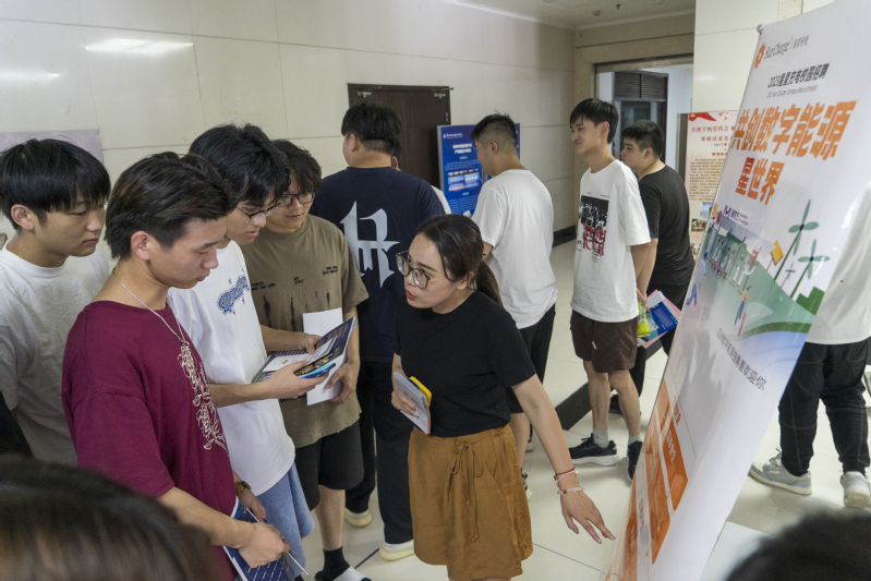 会后,同学们来到图文楼一楼招聘大厅,穿梭在各个展位前,咨询企业情况、岗位信息,为自己的顶岗实习精选目标,并积极投递简历,求职择业。参会企业详细耐心地介绍单位详情,细述岗位要求,为员工指点迷津。