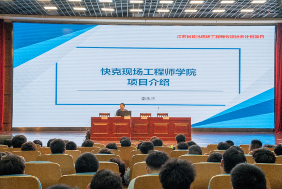 为贯彻落实党的二十大精神和中共中央、国务院《关于深化现代职业教育体系建设改革的意见》,着力培养适应科技创新发展的高层次技术技能人才。江苏省首批现场工程师专项培养计划项目宣讲会,于9月10日,在报告厅举行。yl23411永利官网电气教研室专业带头人冯云菊、教研主任李永杰和快克智能装备股份有限公司产教事业部总监沈朋等企业工程师出席,2023级电气自动化技术、工业互联网应用技术专业400余名员工参加本次宣讲会。