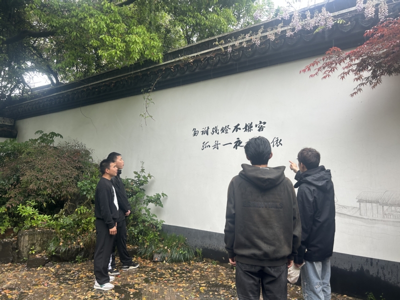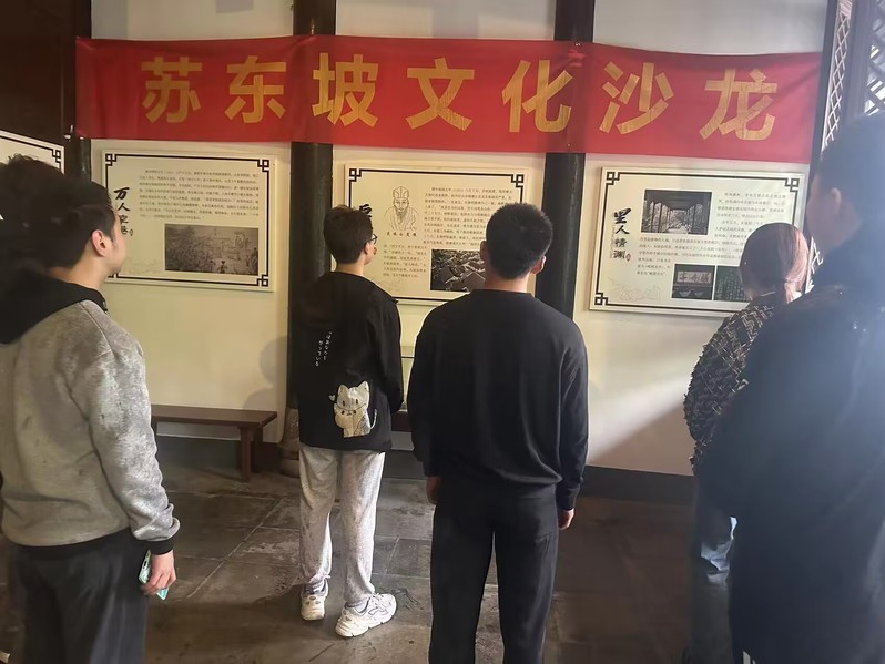 同学们走进内院,就被一副泛舟图吸引,“多谢残灯不嫌客,孤舟一夜许相依”的诗在墙上展示。故居内的展览详细介绍了苏东坡的一生,包括他的仕途经历、文学创作以及与常州的深厚渊源。同学们通过观看展品、阅读资料,更加深入地了解了这位文学巨匠。从摆设的诗词作品中感受到了他的才情和豁达。对苏东坡的才华和人格魅力深感敬佩,也对中国传统文化有了更深刻的认识。