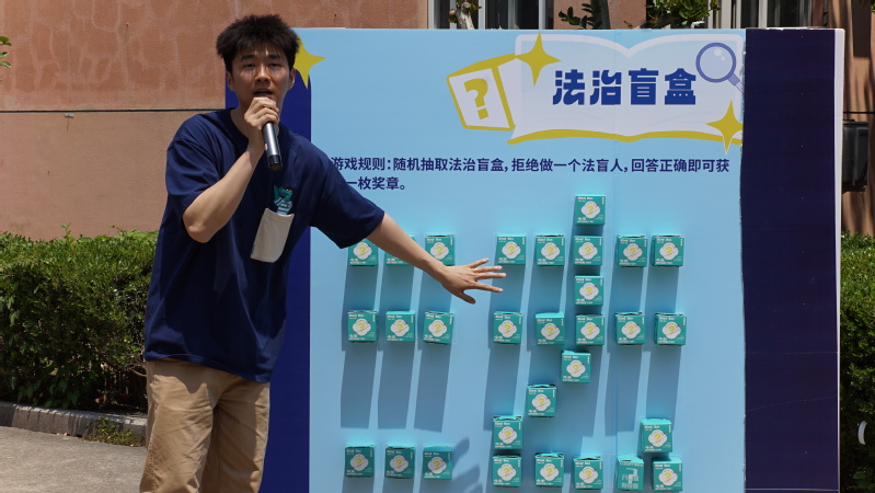 法治盲盒—“闯关者”随机抽取盲盒,正确回答盲盒中的法治小问题,并大声念出来,观众鼓掌表示认可后即可进入下一环节。