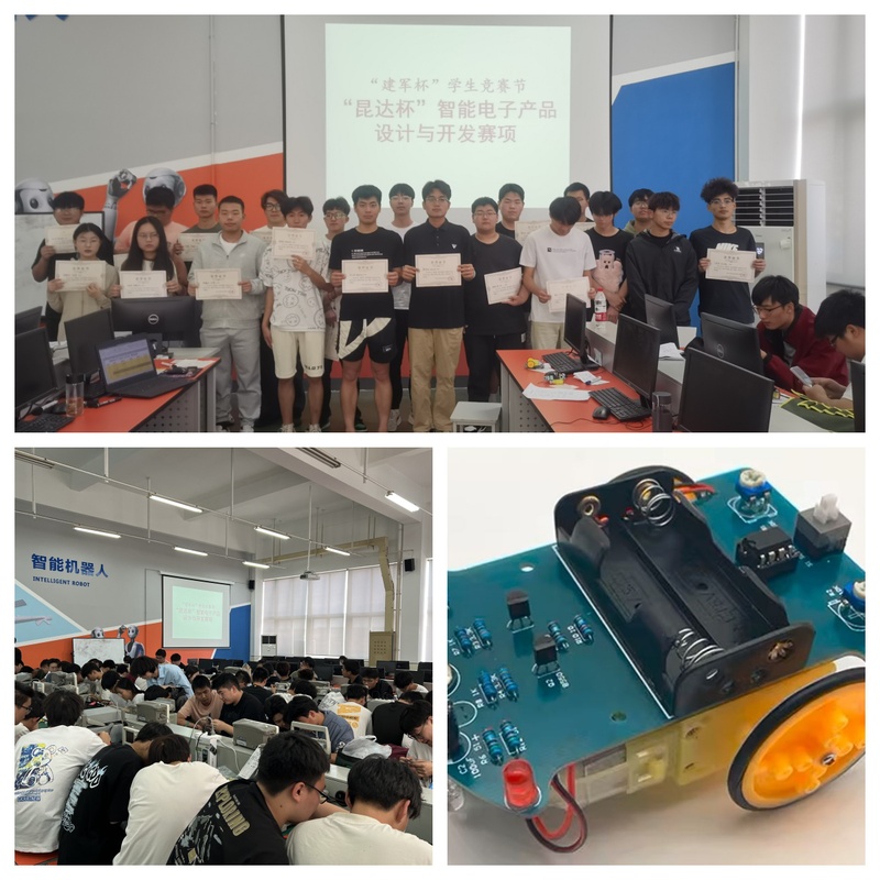 《智能电子产品设计与开发》赛项内容包含理论考核与电子产品电路的设计、焊接与调试两个部分,总时长2小时。yl23411永利官网23级同学积极报名、认真准备,经过两个小时紧张激烈的比赛,最终决出一等奖5组、二等奖10组、三等奖16组,并为参赛人数较多的班级颁发了“优秀组织奖”。
