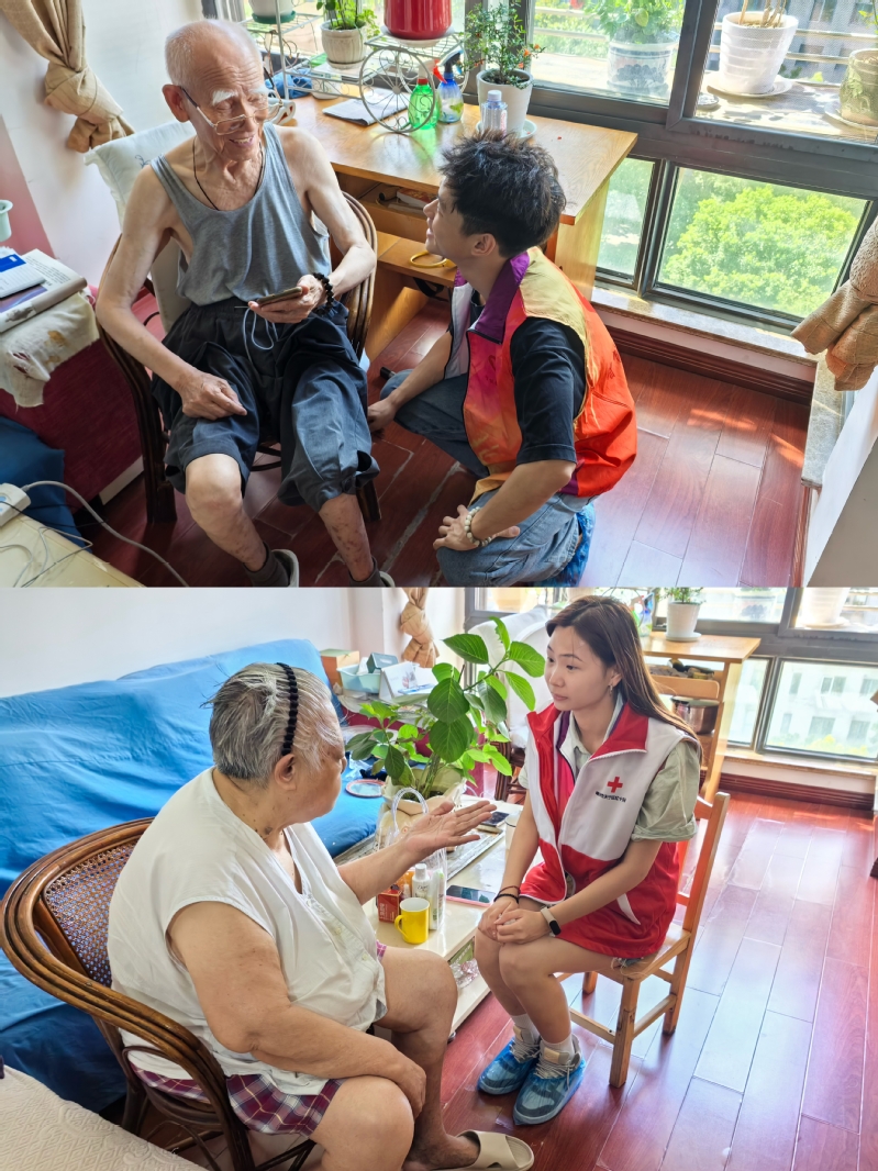 在活动过程中,志愿服务小队走访服务了十余户独居空巢老人,其中包括82岁高龄的常州市劳模、50多年党龄的党员夫妇、91岁的退伍军人等。志愿者们两三人为一组上门为老人们提供系列“暖心”志愿服务,他们手拿降暑包,带着清扫工具,上门与老人们拉家常、整理家务。此外,志愿者们还特别关注了老人们的信息化需求。他们耐心地向老人们介绍了江苏省政务服务APP、“苏服办”APP的功能和操作方法,指导他们如何使用软件平台办理各项业务,从而享受更加便捷的政务服务。最后,志愿者们携带专业摄影设备,耐心为老人调整姿势、选择背景,拍摄肖像照,捕捉他们日常生活中的幸福瞬间,后续冲洗出来装框给予老人留念。