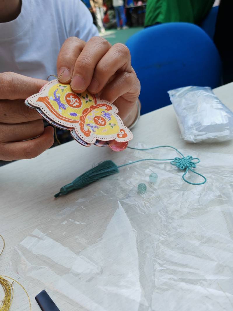 活动现场,员工们带来精彩的黄沙狮子舞狮表演,灵动的狮身、矫健的步伐赢得阵阵喝彩。黄沙狮子第八代传承人王添宇亲自指导,手把手教社区居民学习舞狮基础动作,居民们热情高涨,踊跃体验非遗魅力。在手作环节,大家精心绣制莲花纹样,以“莲”喻“廉”,将廉洁理念融入传统刺绣技艺之中。