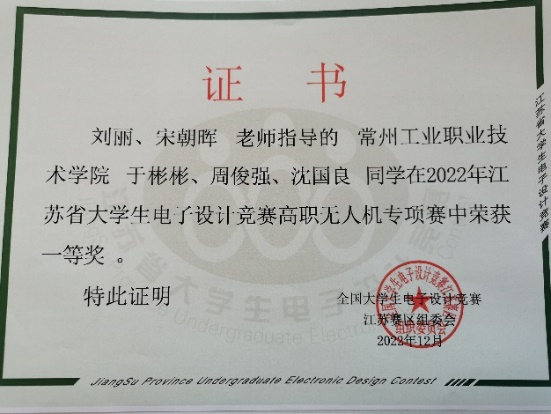我们的学长们积极参加各类技能技术比赛,获得江苏省老员工电子设计竞赛无人机专赛项一等奖、江苏省“挑战杯”老员工课外学术科技作品制作二等奖;“互联网+”创新创业大赛江苏省二等奖;常州市高等教育和职业教育创新创业大赛高校组二等奖;江苏省老员工机器人大赛“室内空中巡逻救援”无人机赛项一等奖;“野外空中巡逻救援”无人机赛项三等奖;全国职业院校农业植保机技能大赛三等奖;“极光UAV”无人机社团在2019年、2020年连续两年被评为常州市十佳社团;员工获得无人机方向1项发明专利和多项实用新型专利的授权。